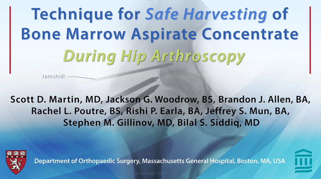 “Technique for Safe Harvesting of Bone Marrow Aspirate Concentrate During Hip Arthroscopy” was awarded Honorable Mention at the 2026 AAOS Annual Meeting in New Orleans, LA by the OVT committee.